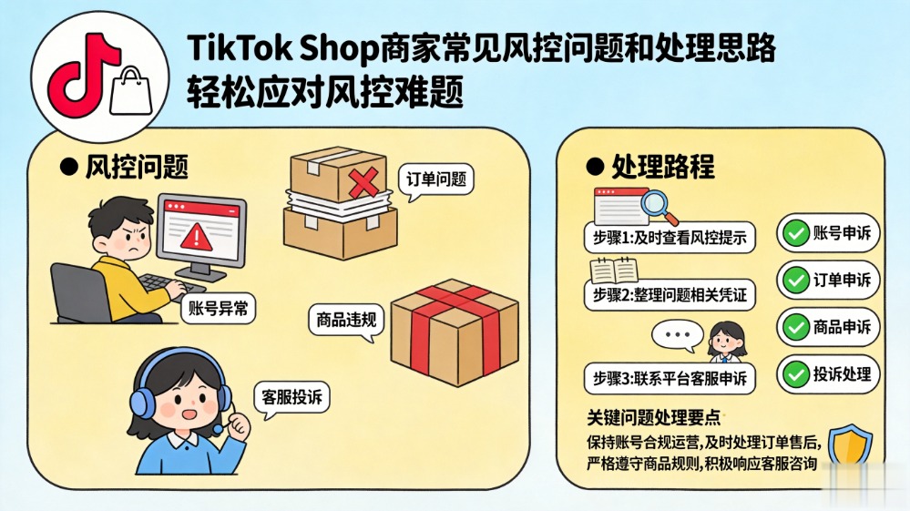 TikTok Shop 商家常见风控问题有哪些?怎么处理更稳?本文从店铺资料、商品信息、履约、售后、操作规范和平台信号等角度,系统分析 TikTok Shop 风控问题的来源与处理思路。