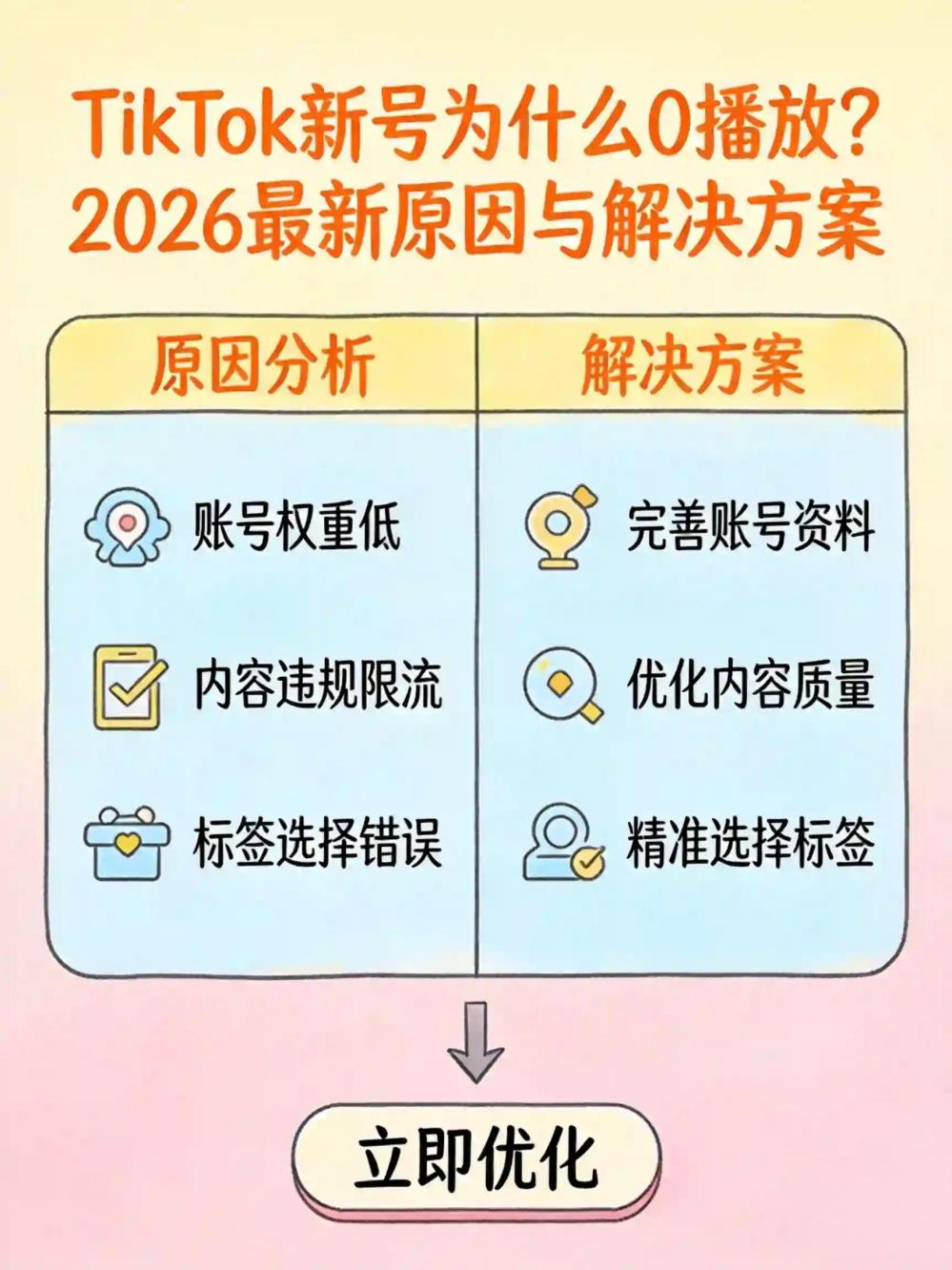 简介TikTok 新号为什么 0 播放?2026 最新原因与解决方案 字数: 约 5,500 字 阅读时间: 约 5 分钟 适用人群: TikTok 新手、跨境电商卖家、内容创作者、海外营销人员 开篇说个大实话 2026 年了...