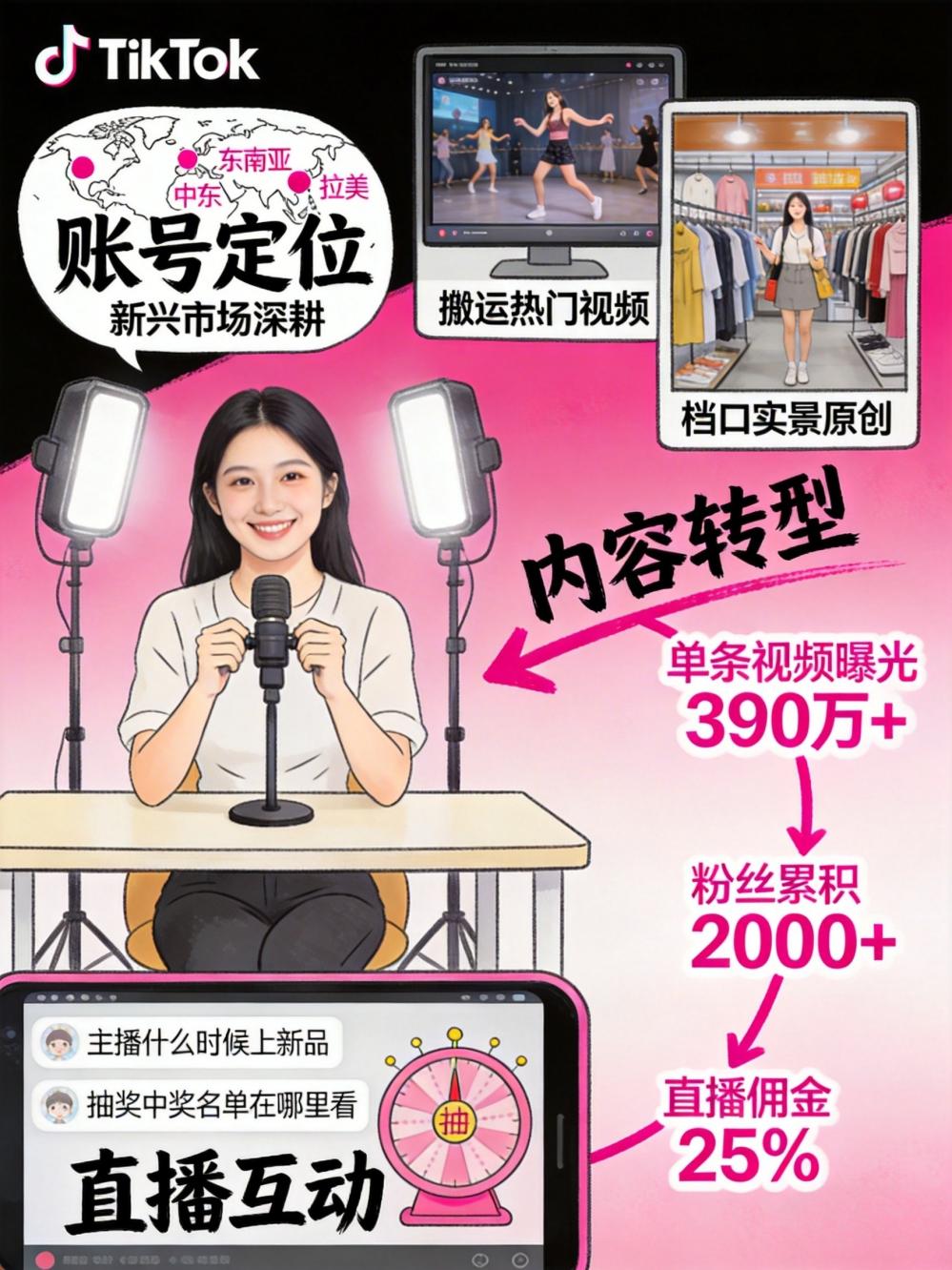简介字数 2653,阅读大约需 14 分钟 TikTok千粉直播号如何破零:从0到千粉的快速涨粉路径 核心判断:千粉不是终点,而是变现的起点 在TikTok上,千粉是一个重要的里程碑: 开通橱窗 :可以...