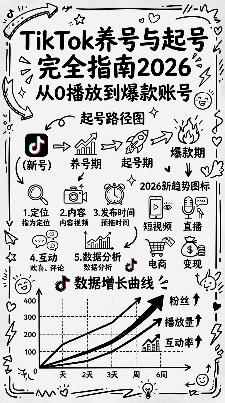TikTok养号与起号完全指南2026:从0播放到爆款账号