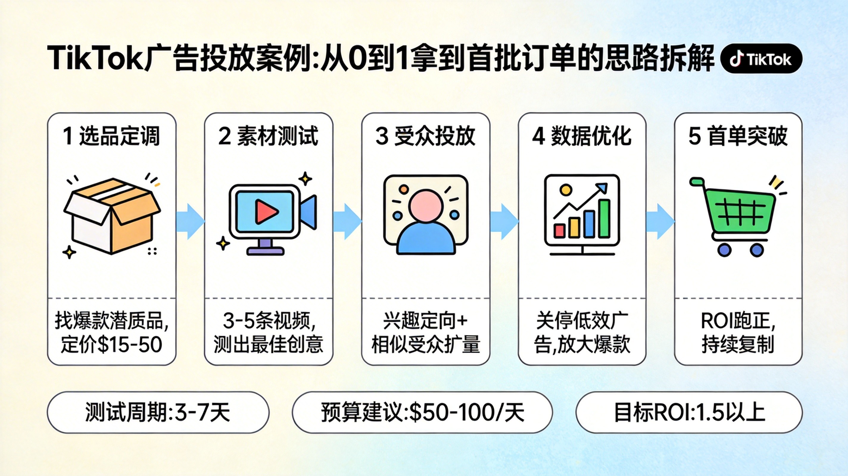 TikTok 广告从 0 到 1 的核心,不是复杂技巧,而是素材、页面和测试节奏的配合。